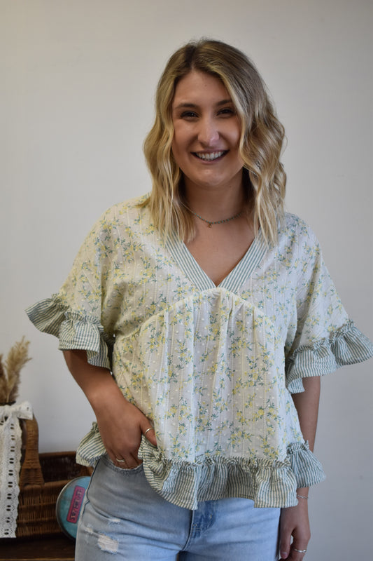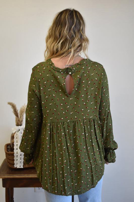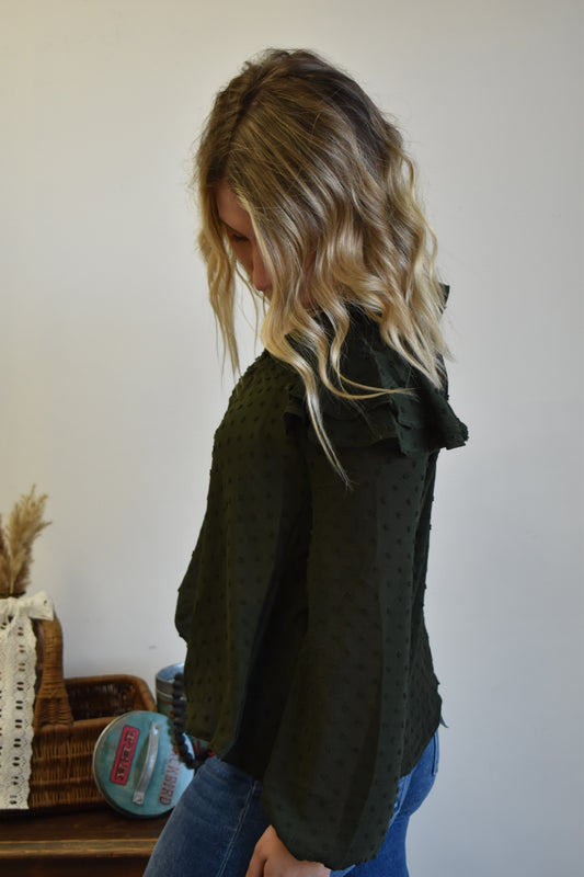Olive Ruffle Blouse