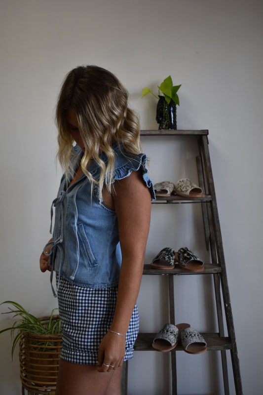 Sold outLight Denim Ruffle Penny Vest
