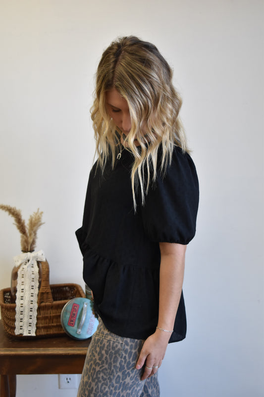 Midnight Ruffle Short Sleeve Blouse