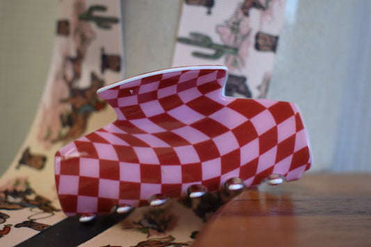 Pink & Red Checkered Hair Clip