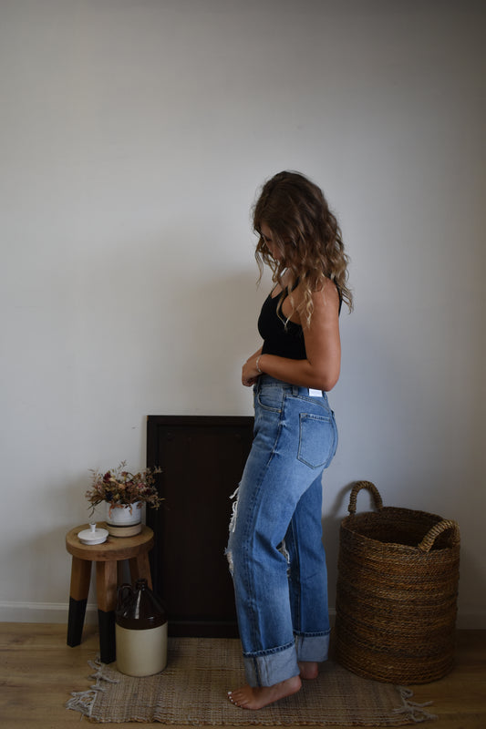 Medium Patchwork Exposed Button Fly Boyfriend Jeans