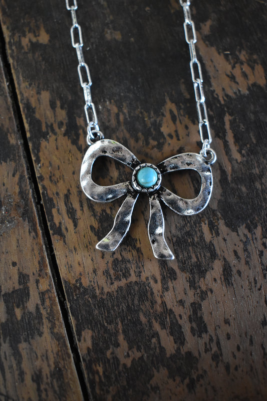 Short Tail Bow & Turquoise Necklace