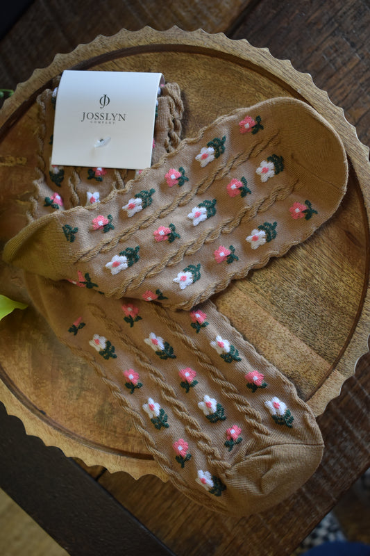 Sold outTan Floral Crew Socks