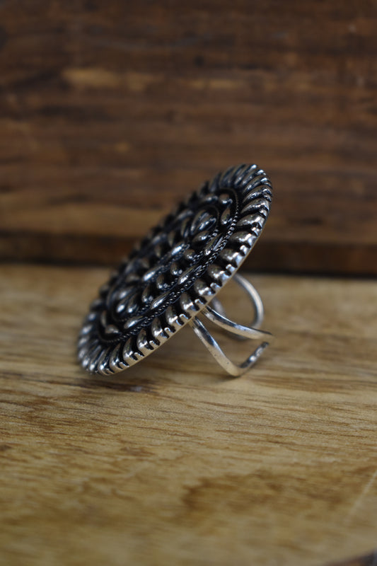Silver Oval Concho Cuff Ring