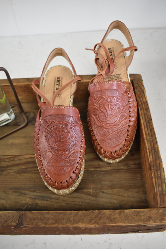 Chedron Tooled Flower Mule Wrap Sandals