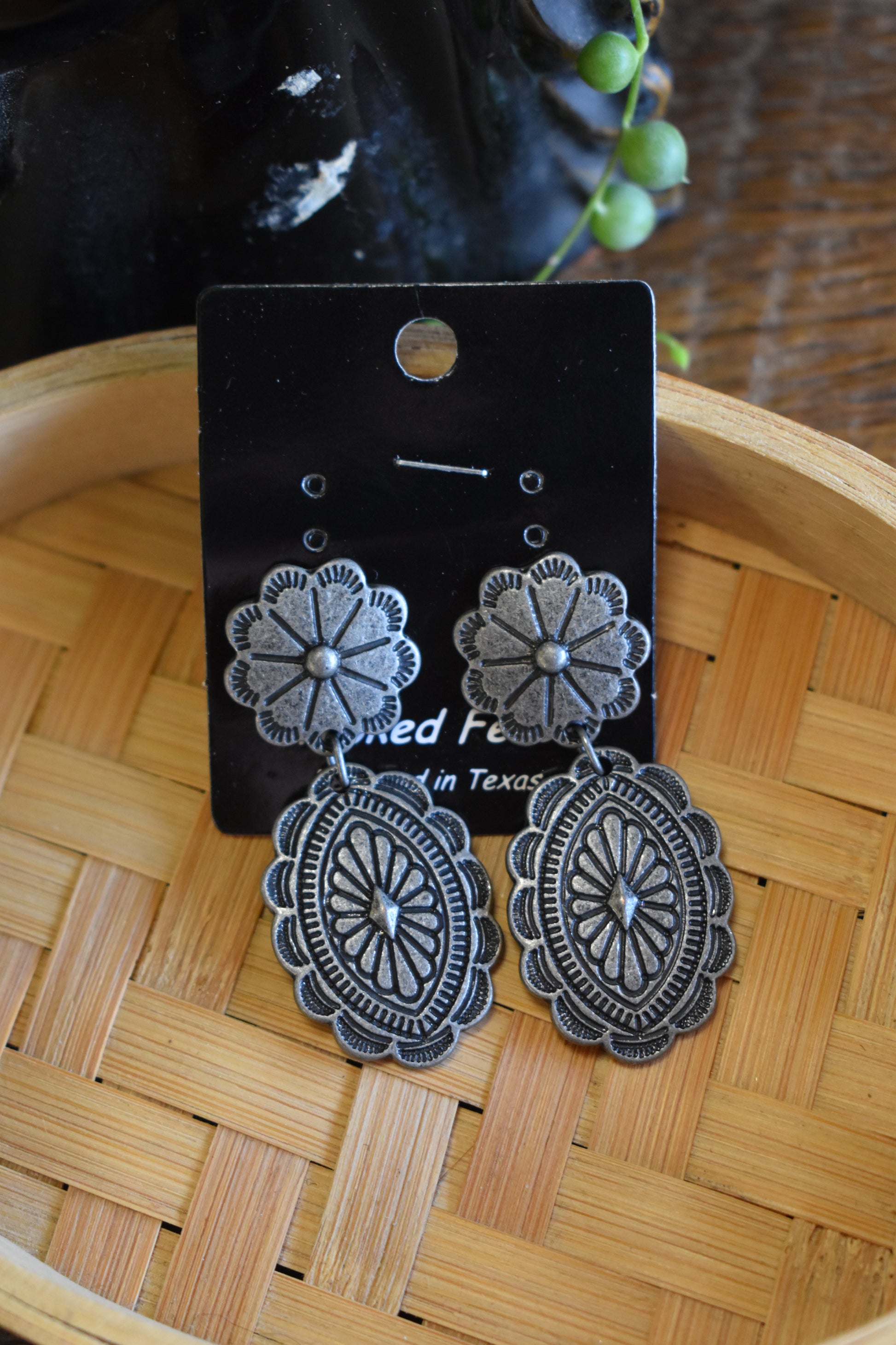 Antique Silver Oval Concho Earrings