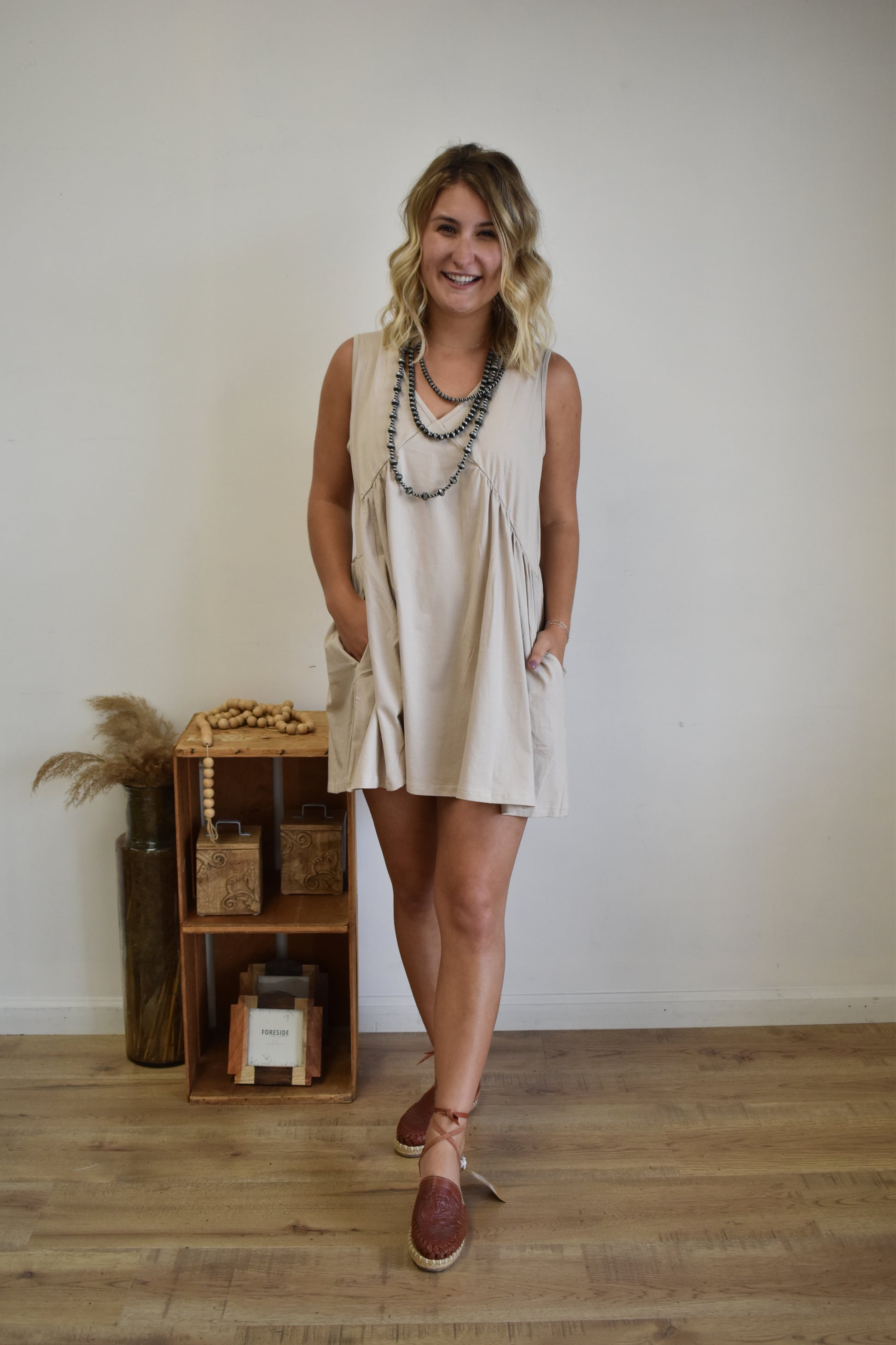 Light weight structured linen babydoll dress, upside down v detail stitching front and back. Two side hidden pockets, extra Flowey, wide.