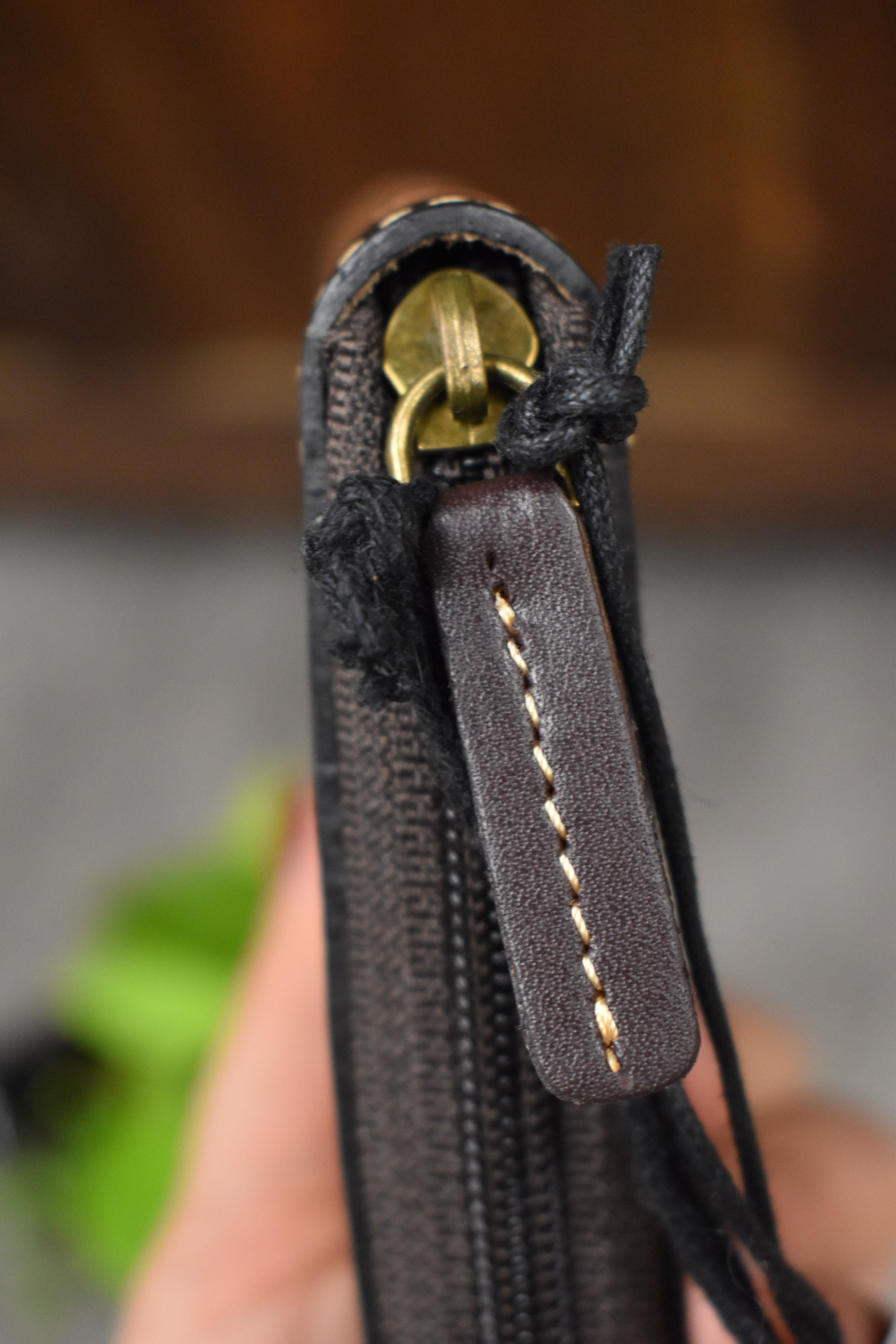 Double sided card holder, coin pouch in between, & two cash pockets.ย