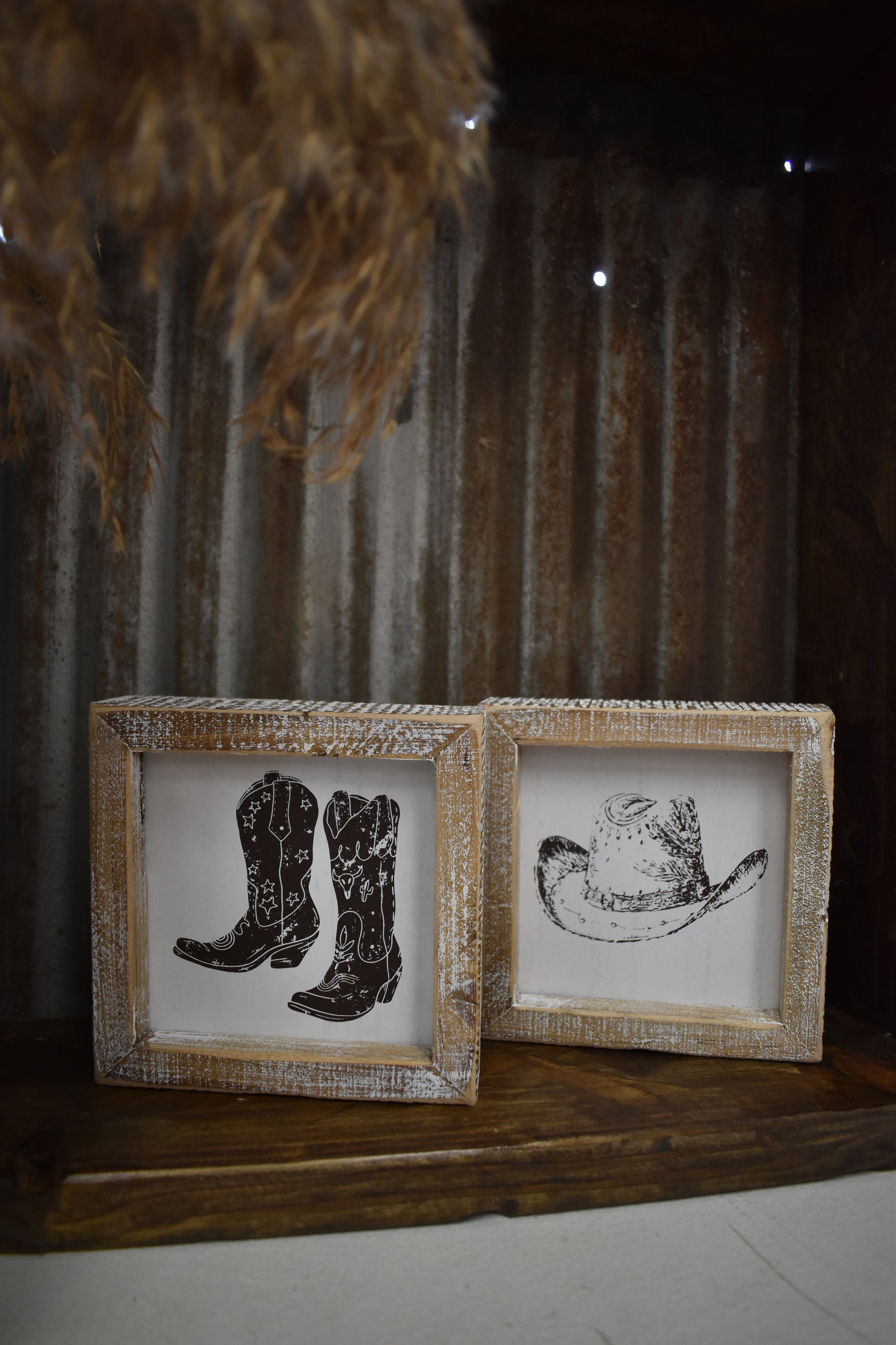 Boot & Cowboy Hat Shelf Decor