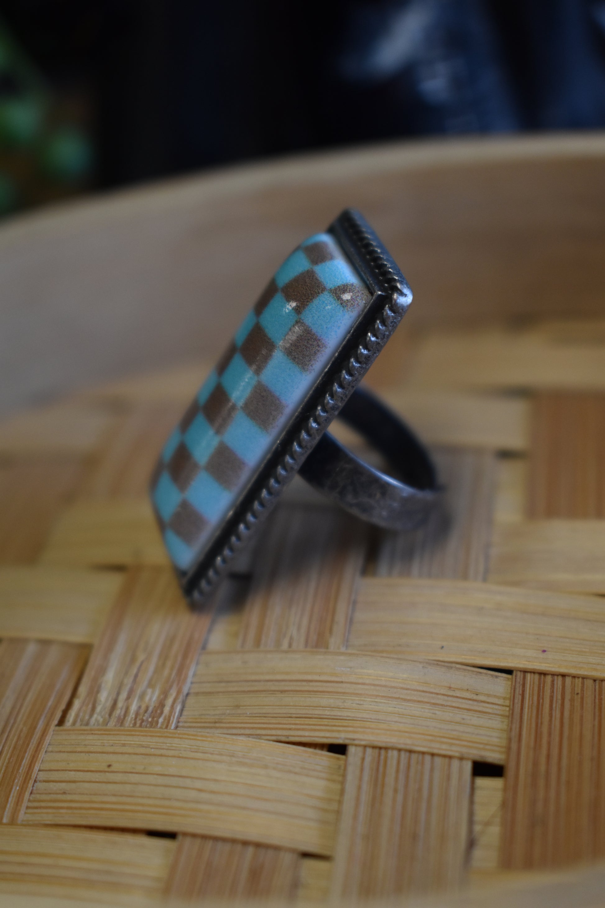 Brown + Turquoise Checkered Ring