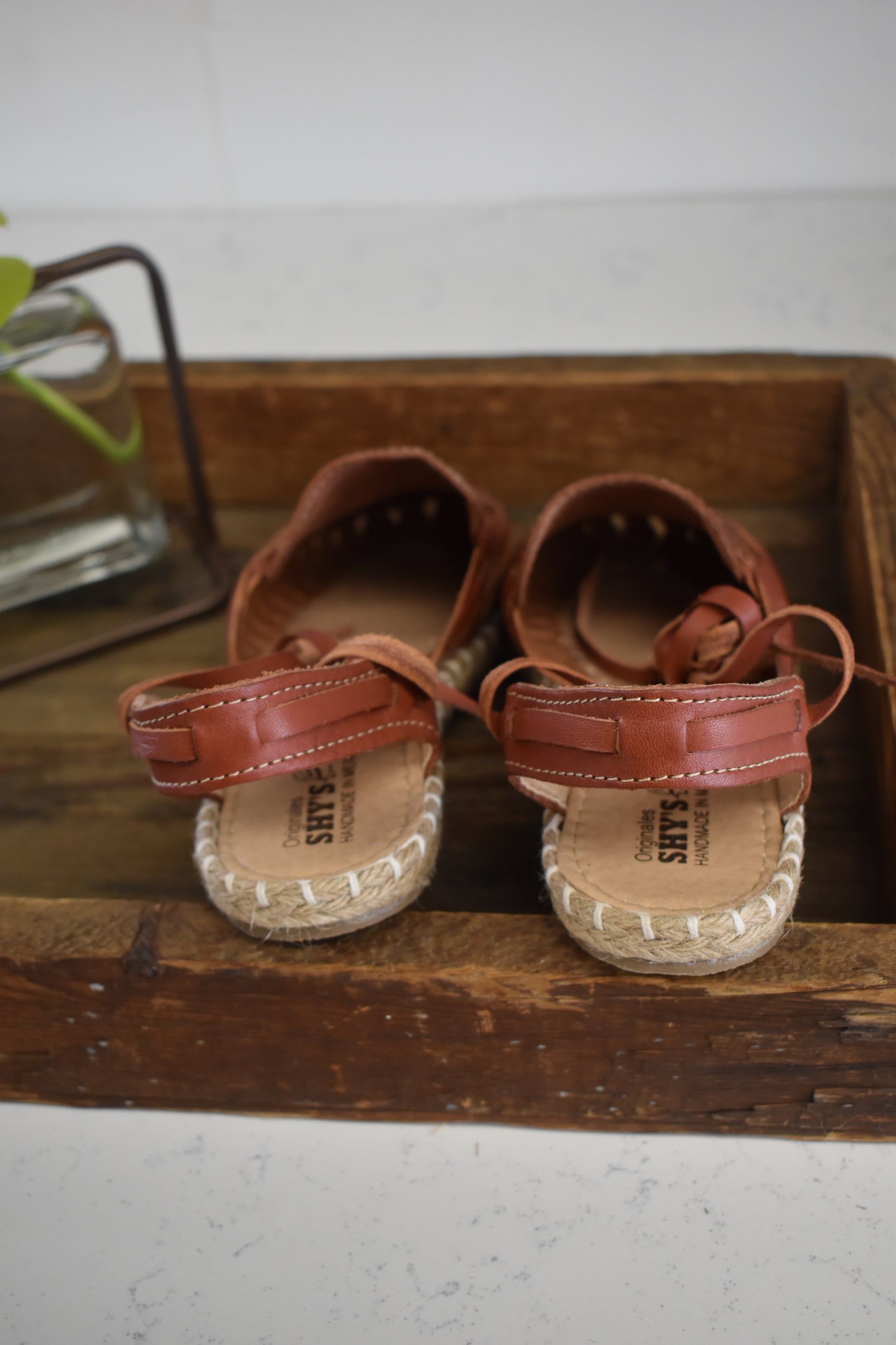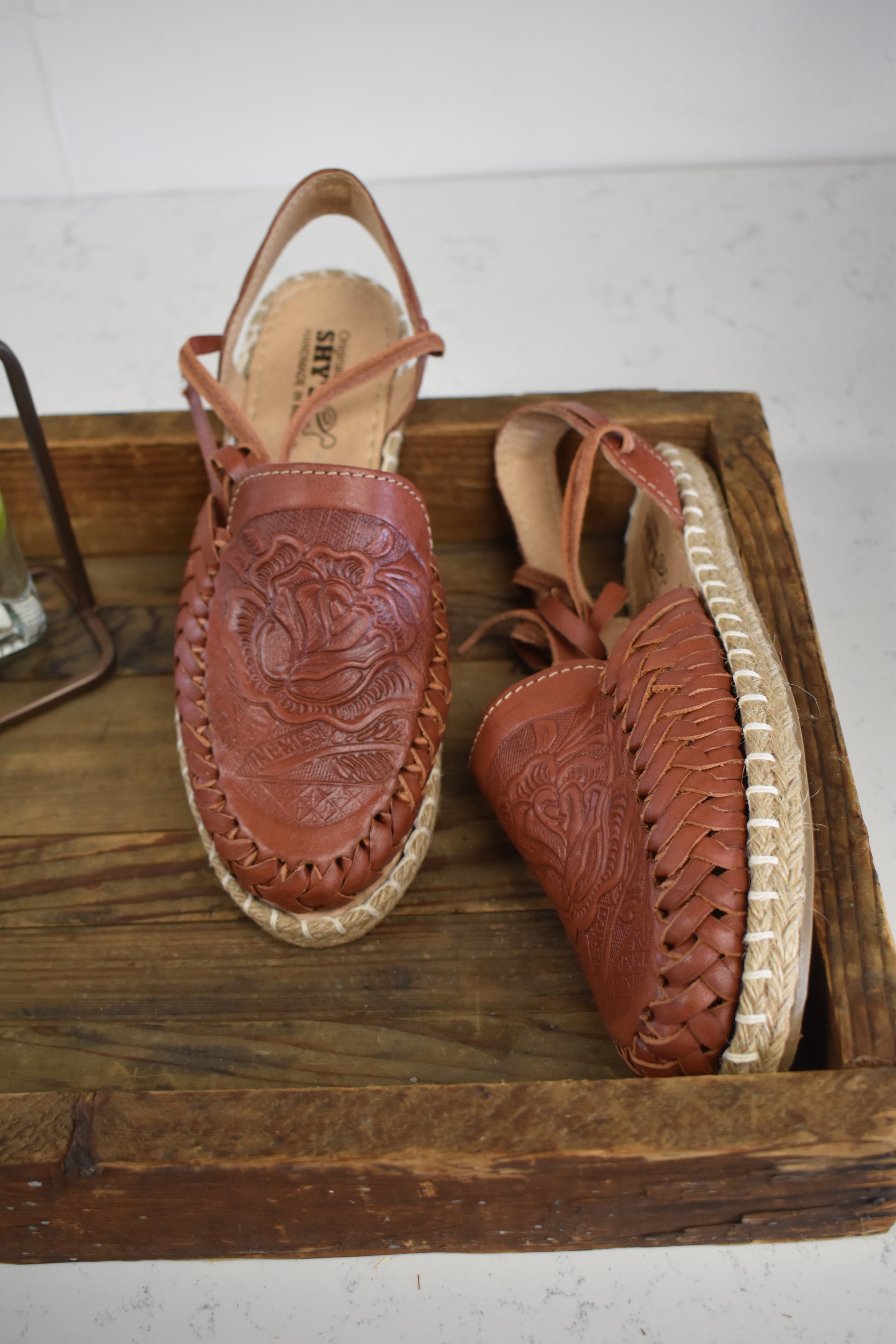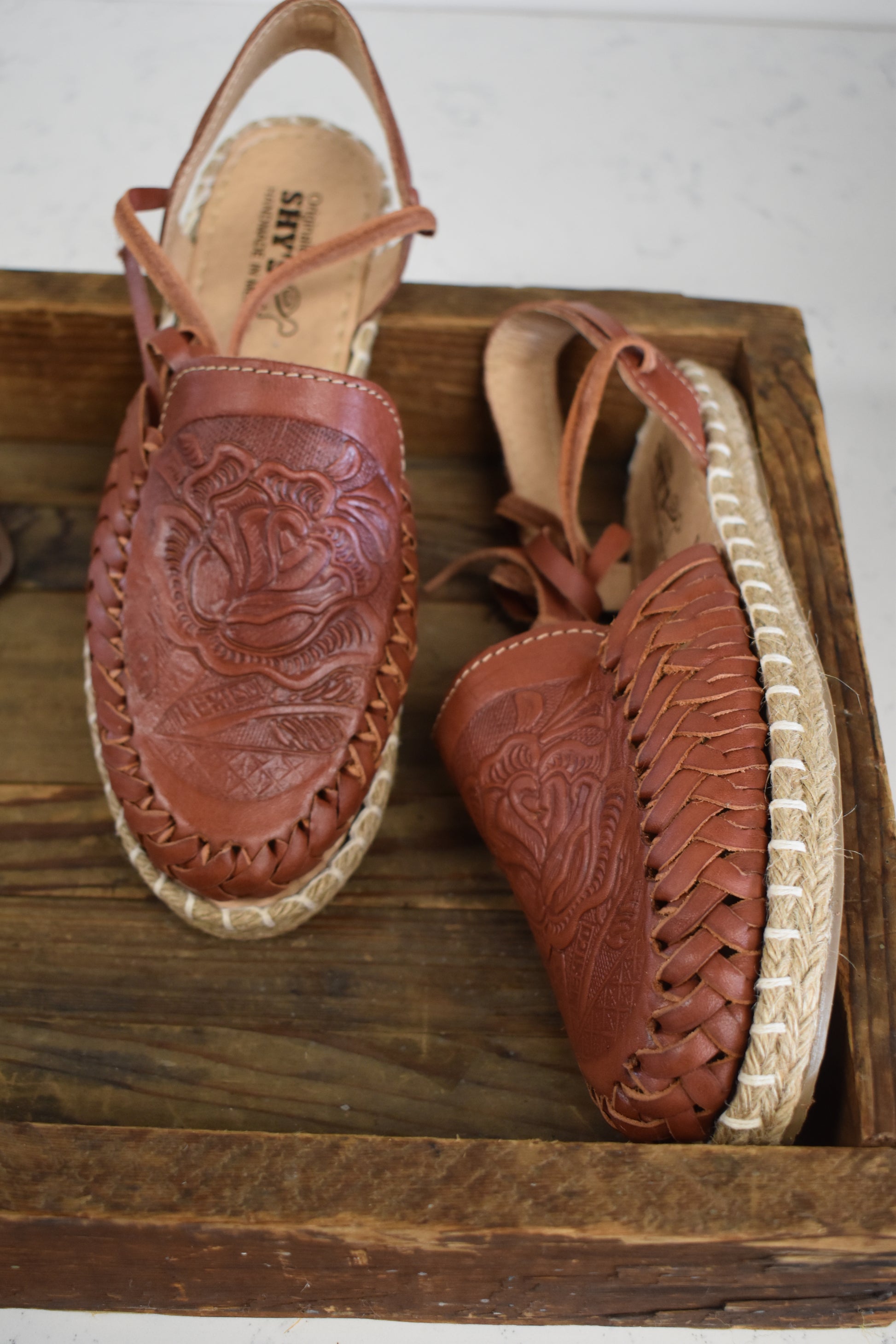 Real leather floral mule sandals with stitched soul, breathable loose stitched sides, ankle tie.