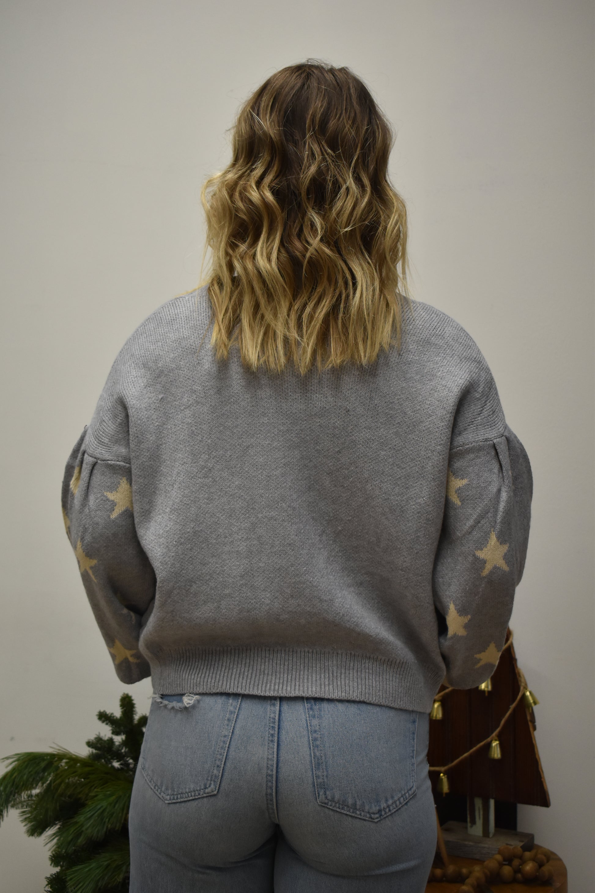 Grey Puff Sleeve Star Sweater
