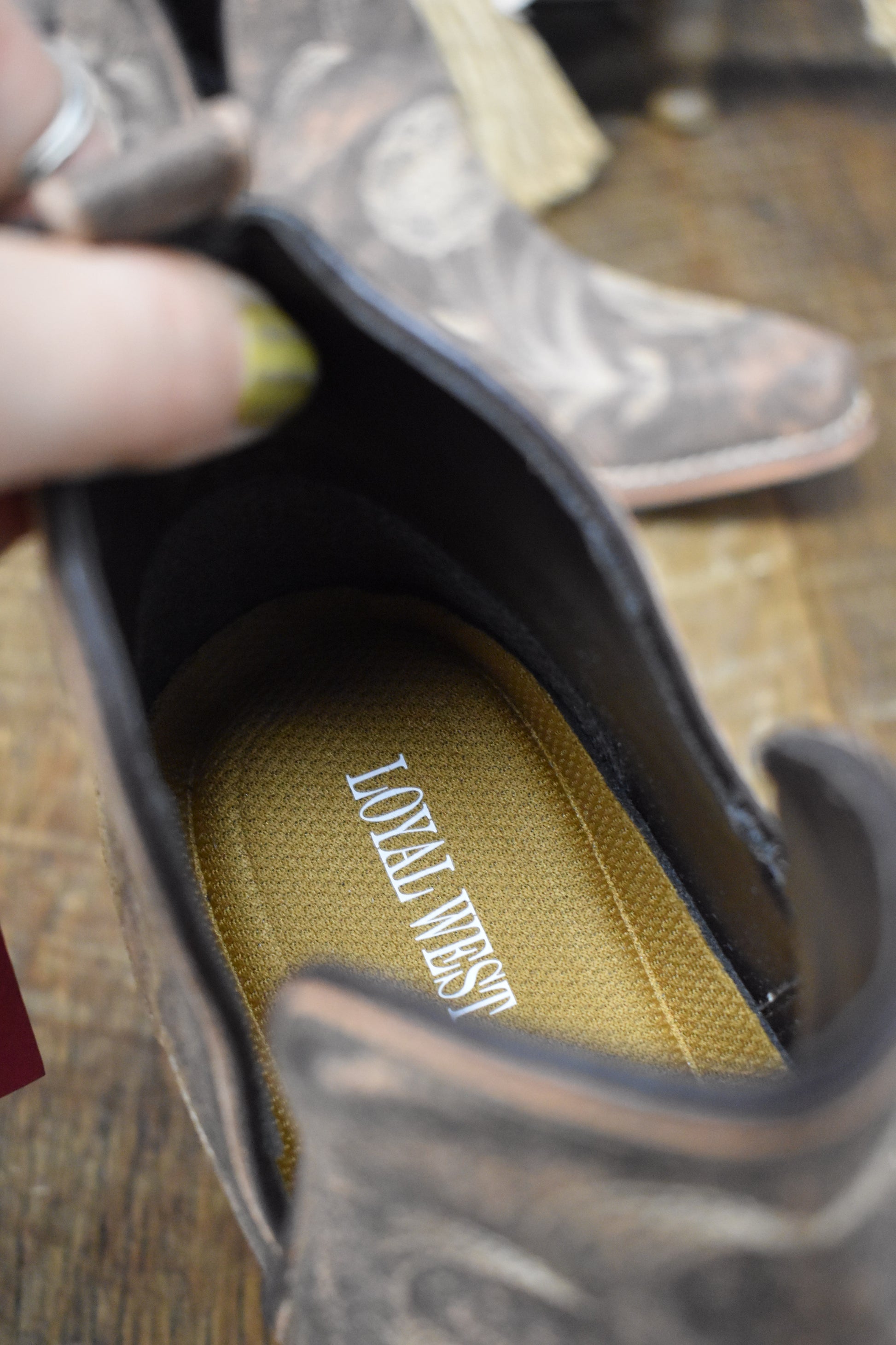 Pointed toe genuine leather booties with a 2” heel. Split ankle for easy slip on fit, extremely cushioned shoe insert & loop tab on ankle. Bootie fits true to size with wiggle room in the toe, recommend sizing down if you want a tighter fit.