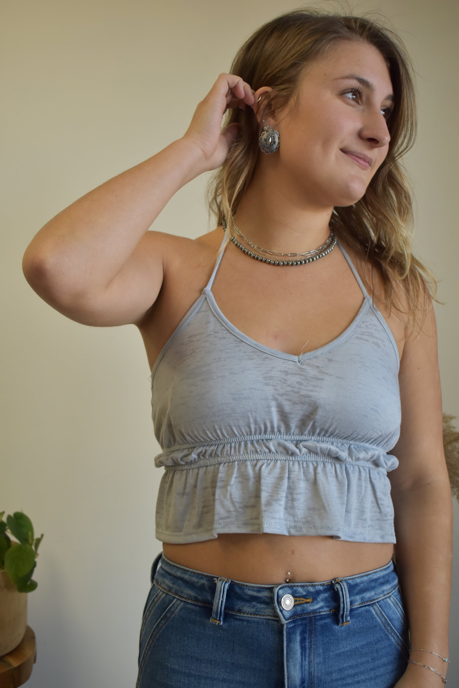 Light Blue Scrunch Halter Tank