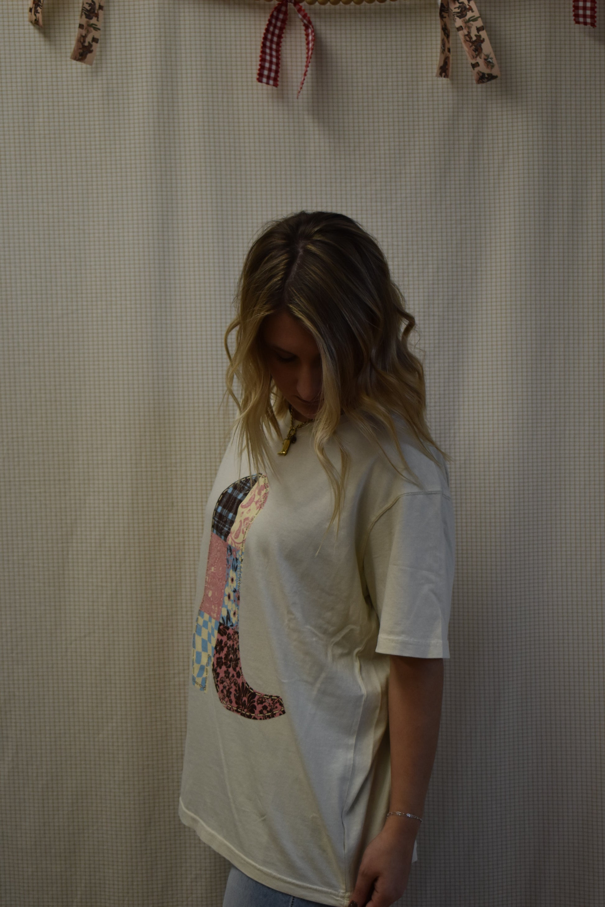 Multi printed patch graphic tee, straight tee fit.