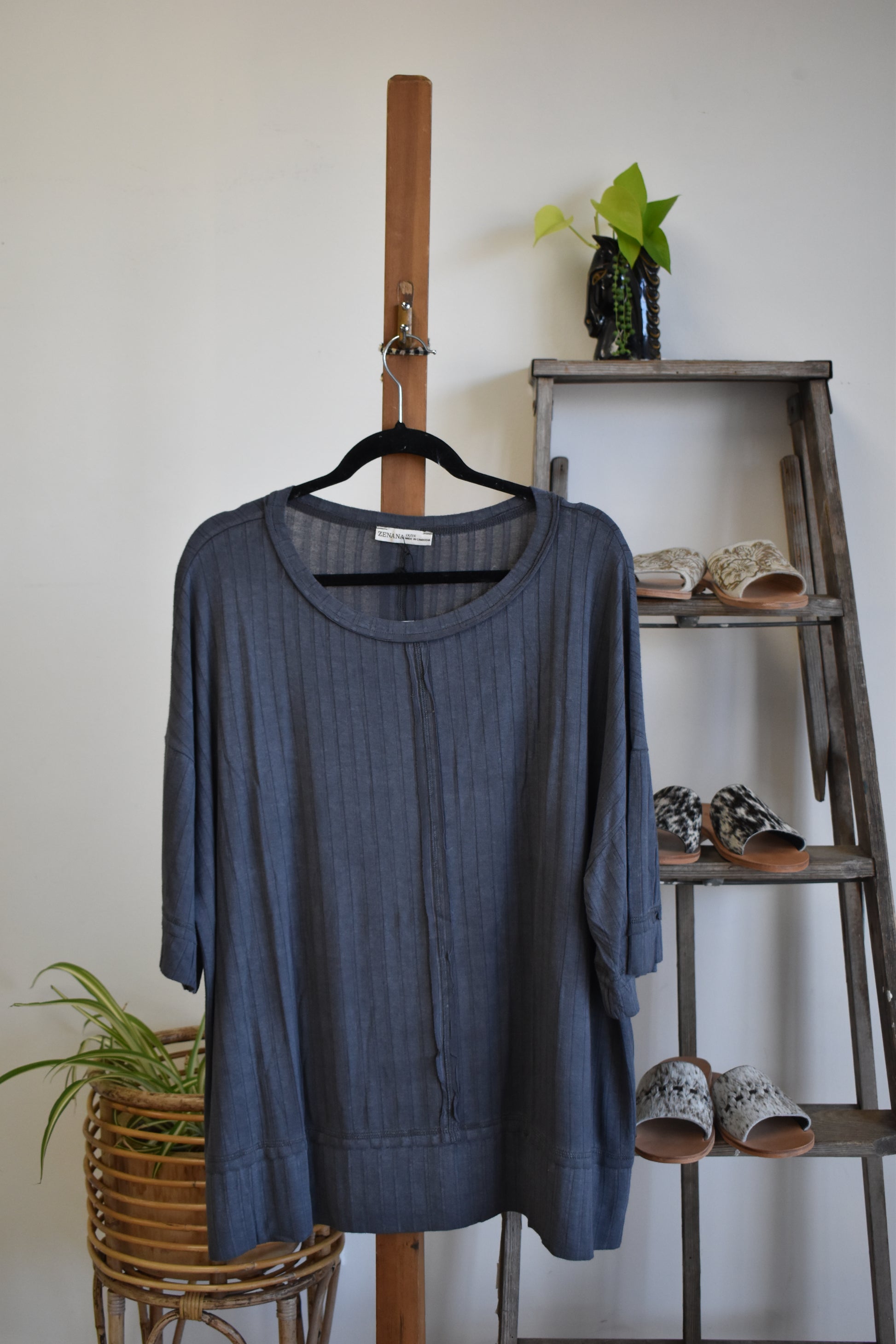 Thin striped detail (thin ribbed), breathable material, long short sleeve, Boxey fit.