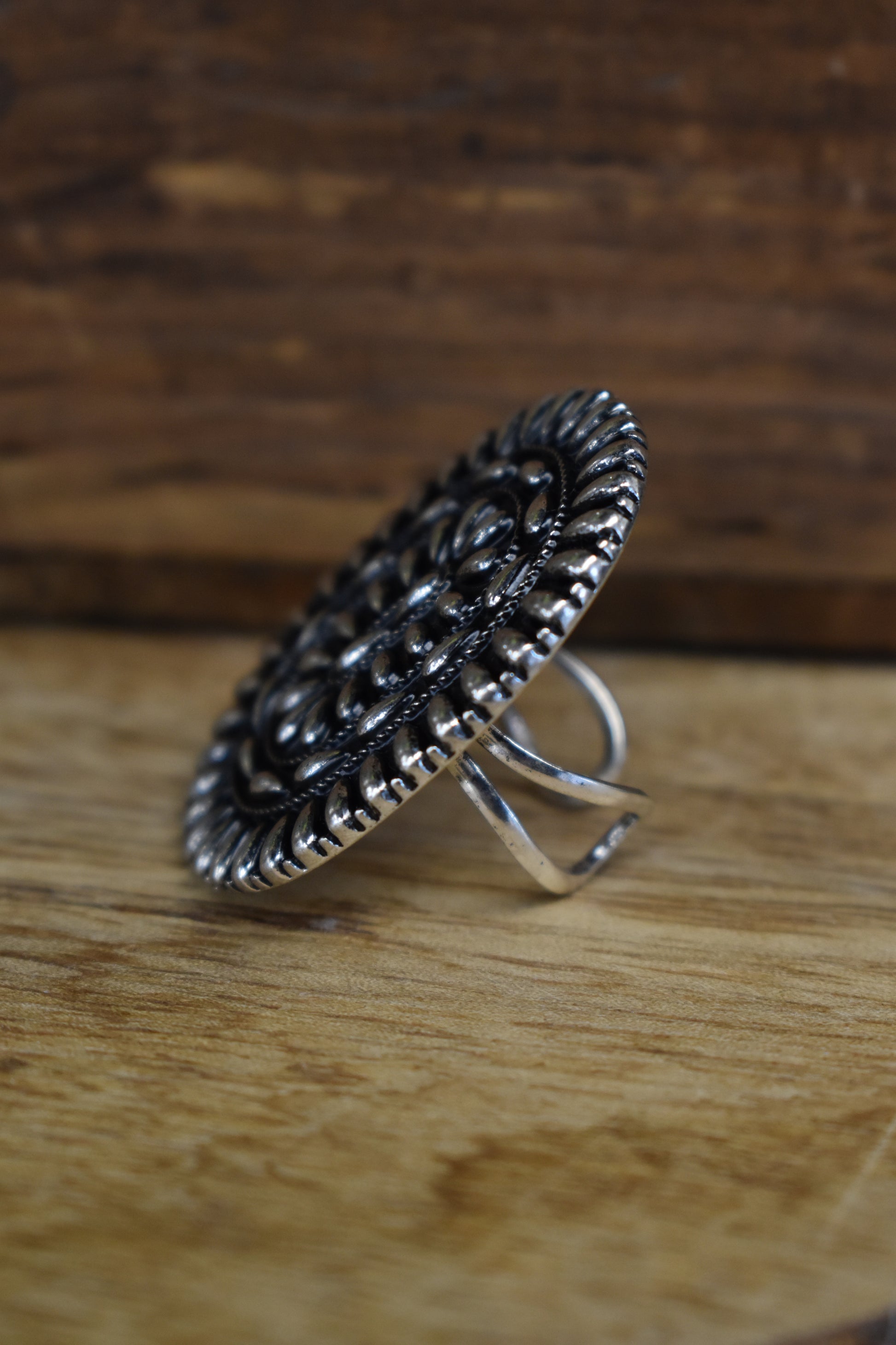 Silver Oval Concho Cuff Ring