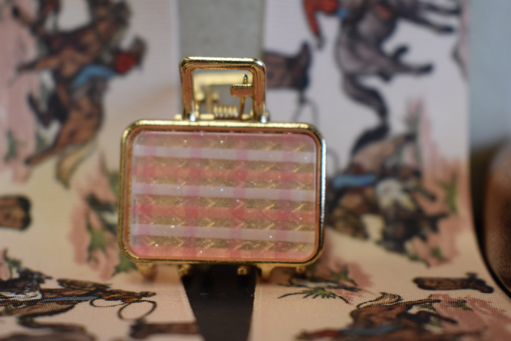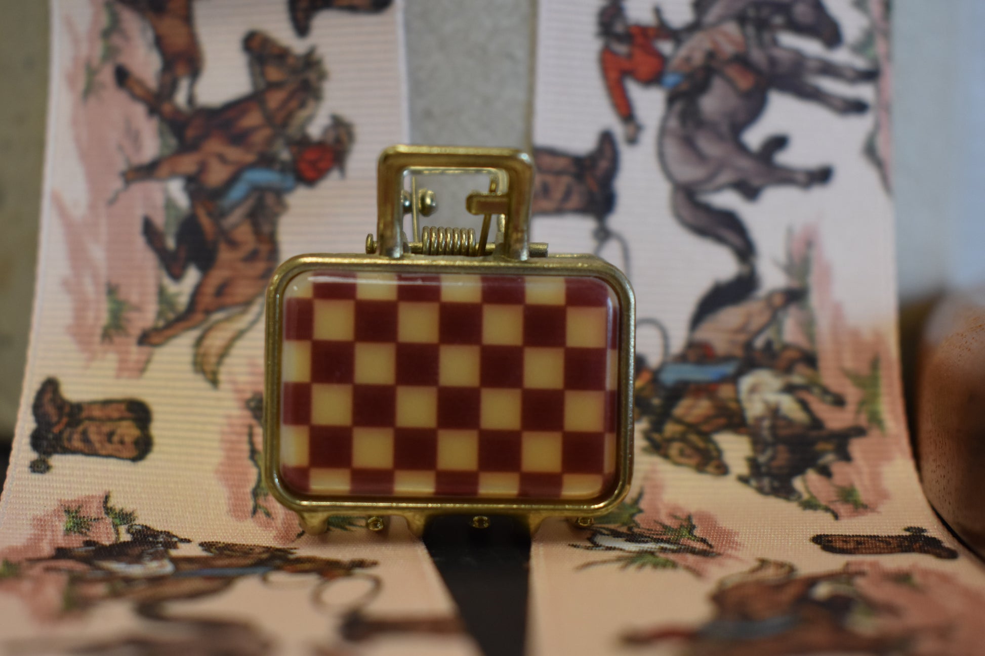 Square shaped, checkerboard detailed, gold claw clip.