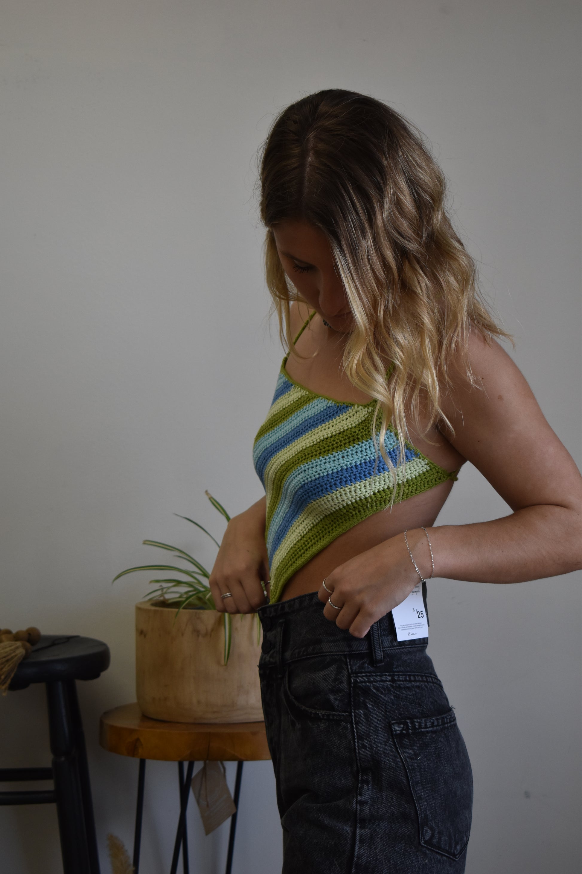 Multi color crochet tank bandana top, tie up back that adjusts straps.