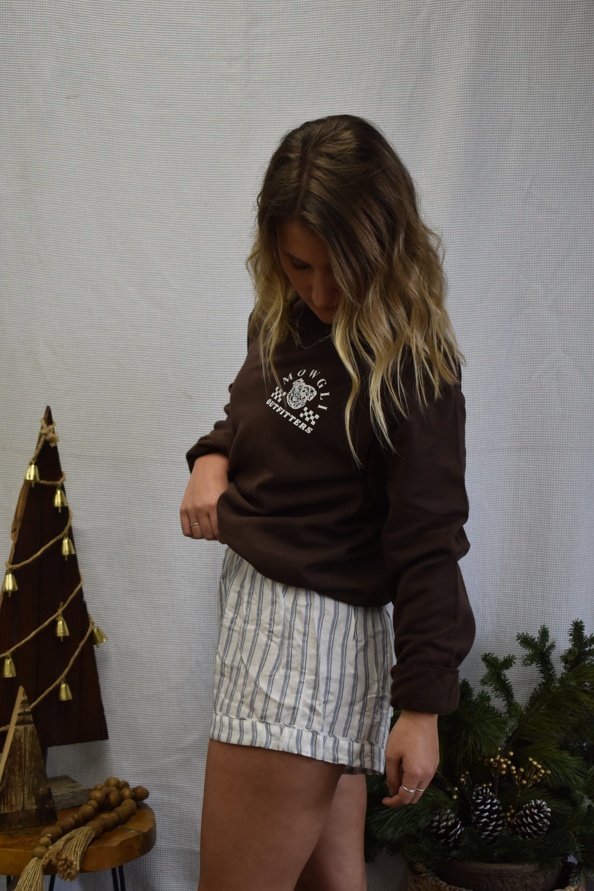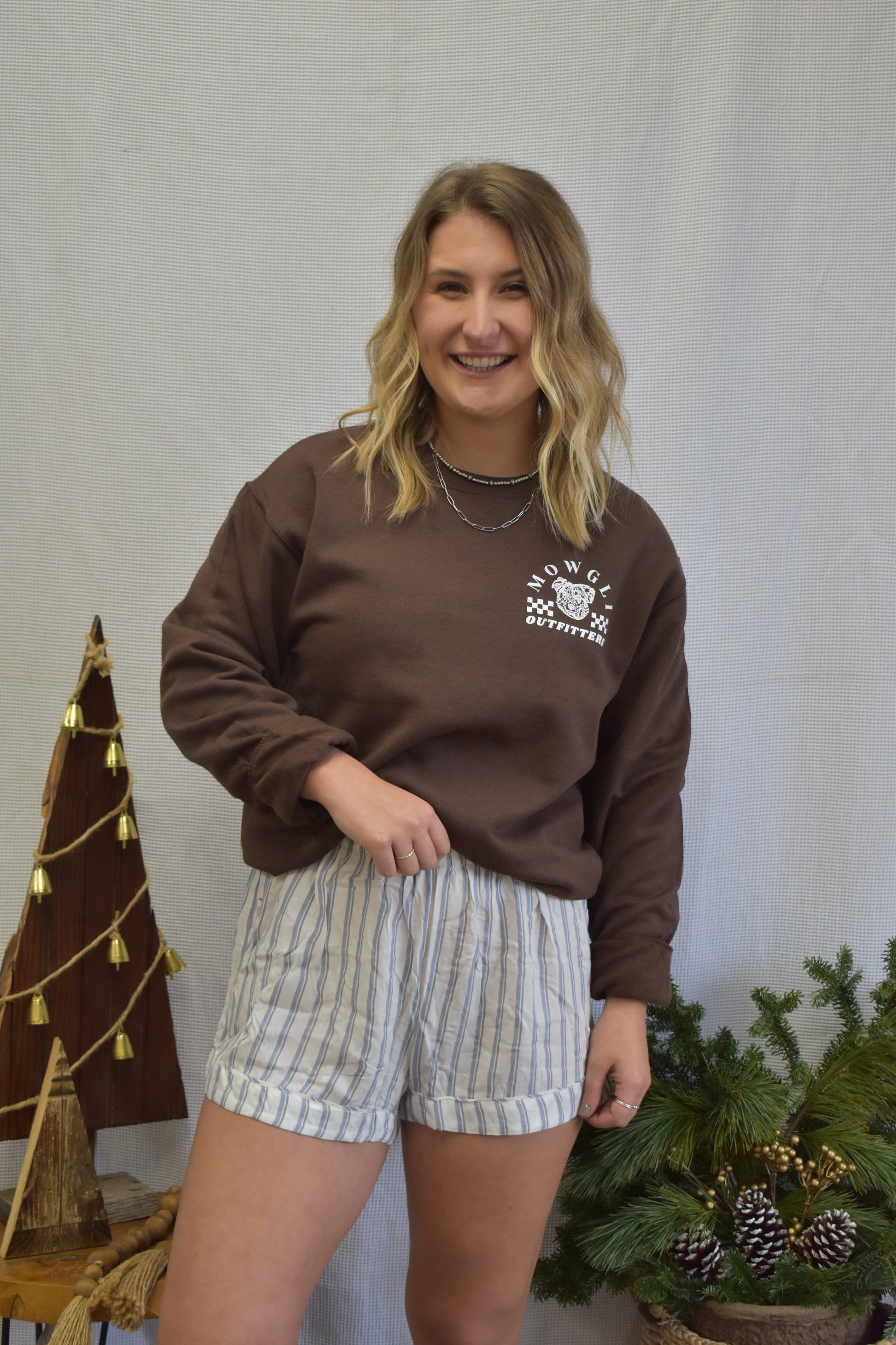 Striped shorts with blue stripe detailing & elastic waistband. Perfect for loungewear!