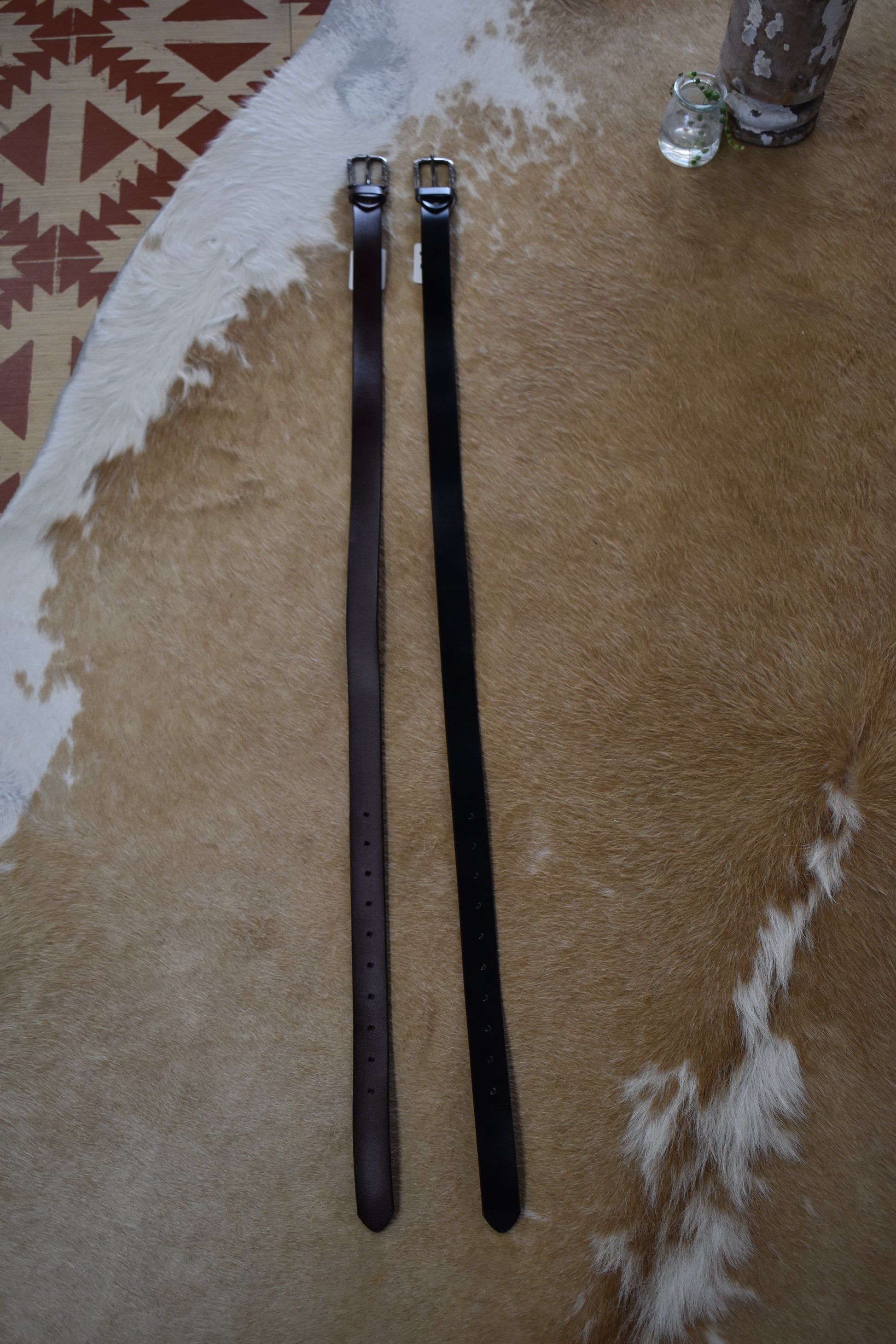durable leather belt with buckle detail & extra adjustable loop for extra length.