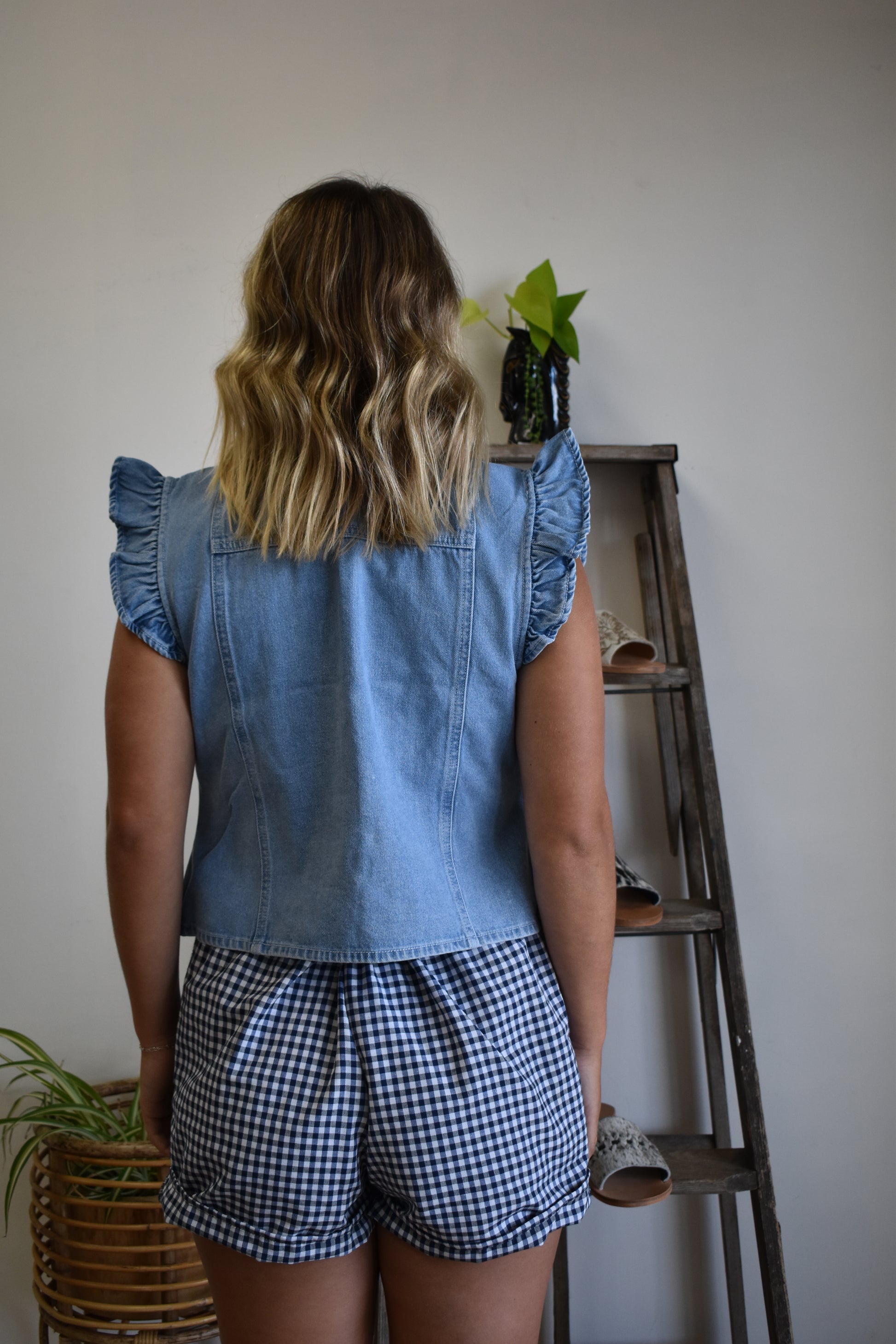 Light Denim Ruffle Penny Vest