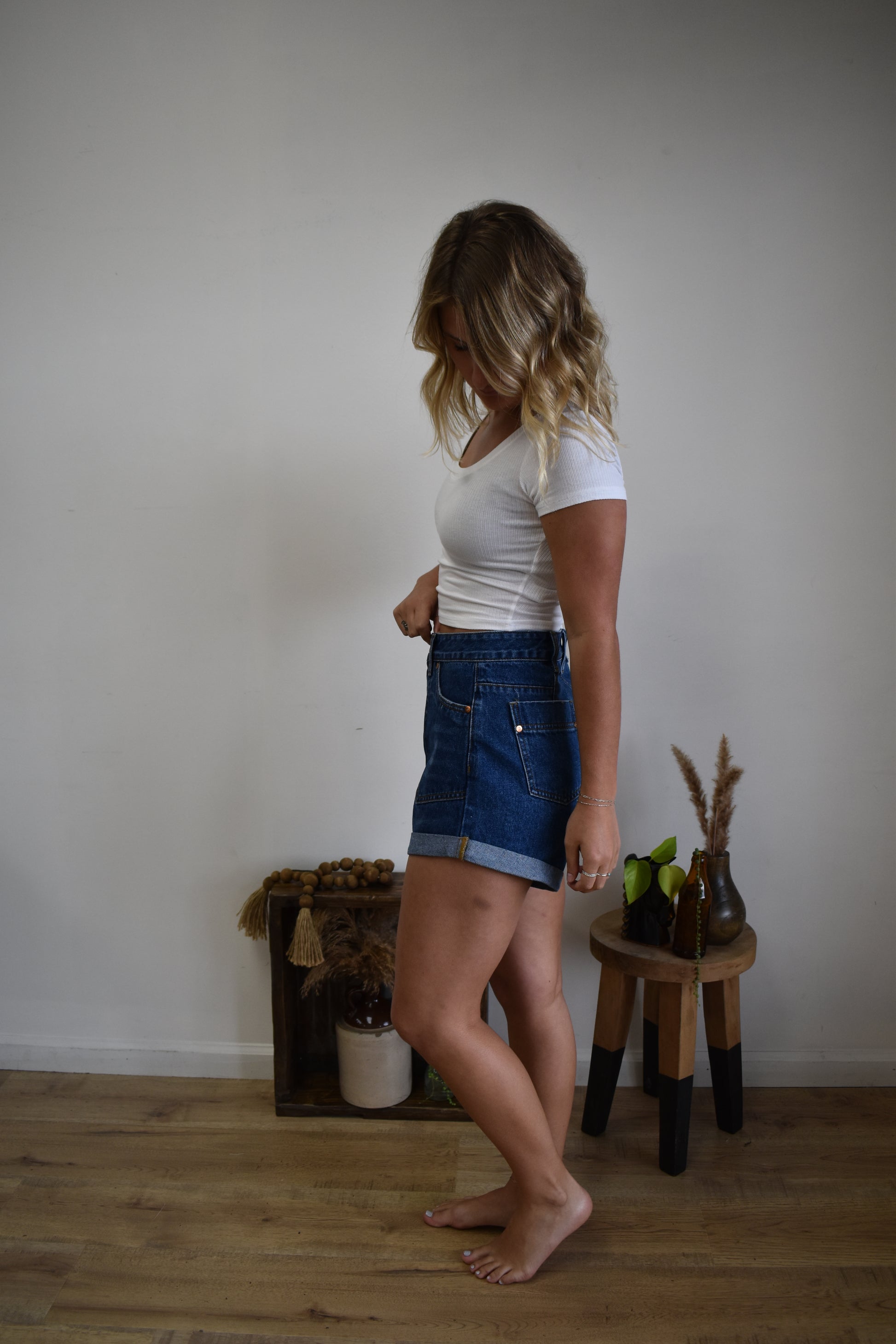Western Rolled Hem Denim Shorts
